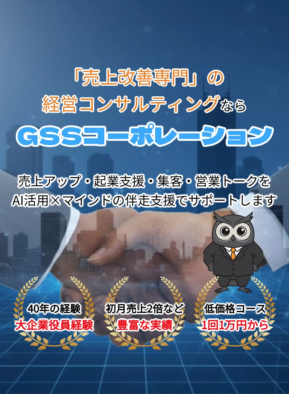 大企業の合併、執行役員を経験し、2011年にGSS Corporationを設立しました。合計で40年以上にわたってビジネスの前線に立ち、様々な経験をしました。
